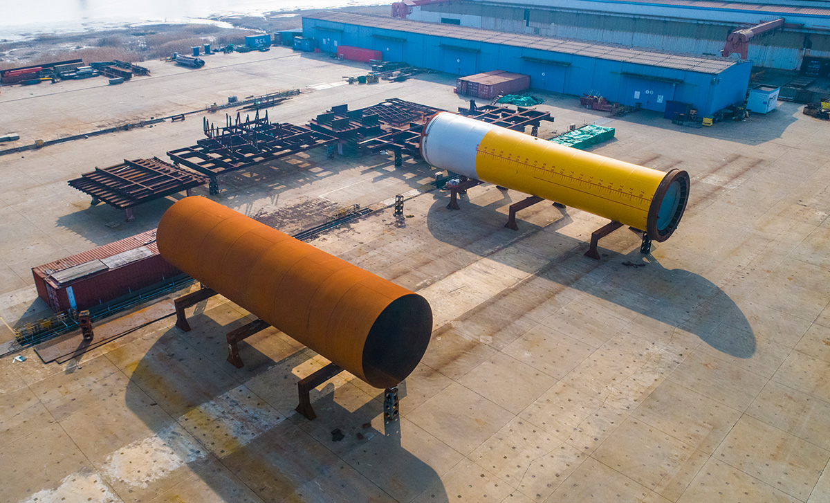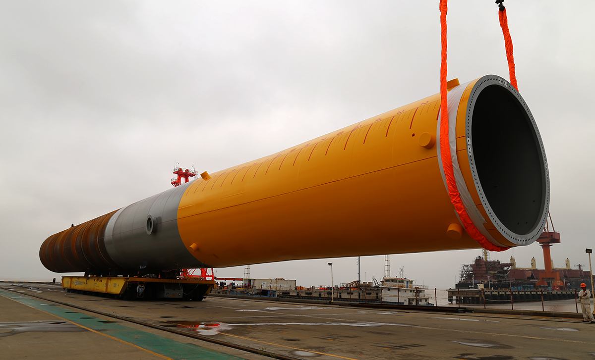 單樁基礎目前是全球范圍內運用最普遍的一種海上風電基礎,在己建成的海上風電場中得到了最廣泛的應用。海上風電單樁基礎直徑6~10m,基礎樁長100米左右,采用大型液壓打樁錘將其打入海床,單樁上部通過法蘭及螺栓與塔筒連接。單樁基礎適用于水深較淺10~30m或中等水深30~60m水域,可安裝各種容量的風機。