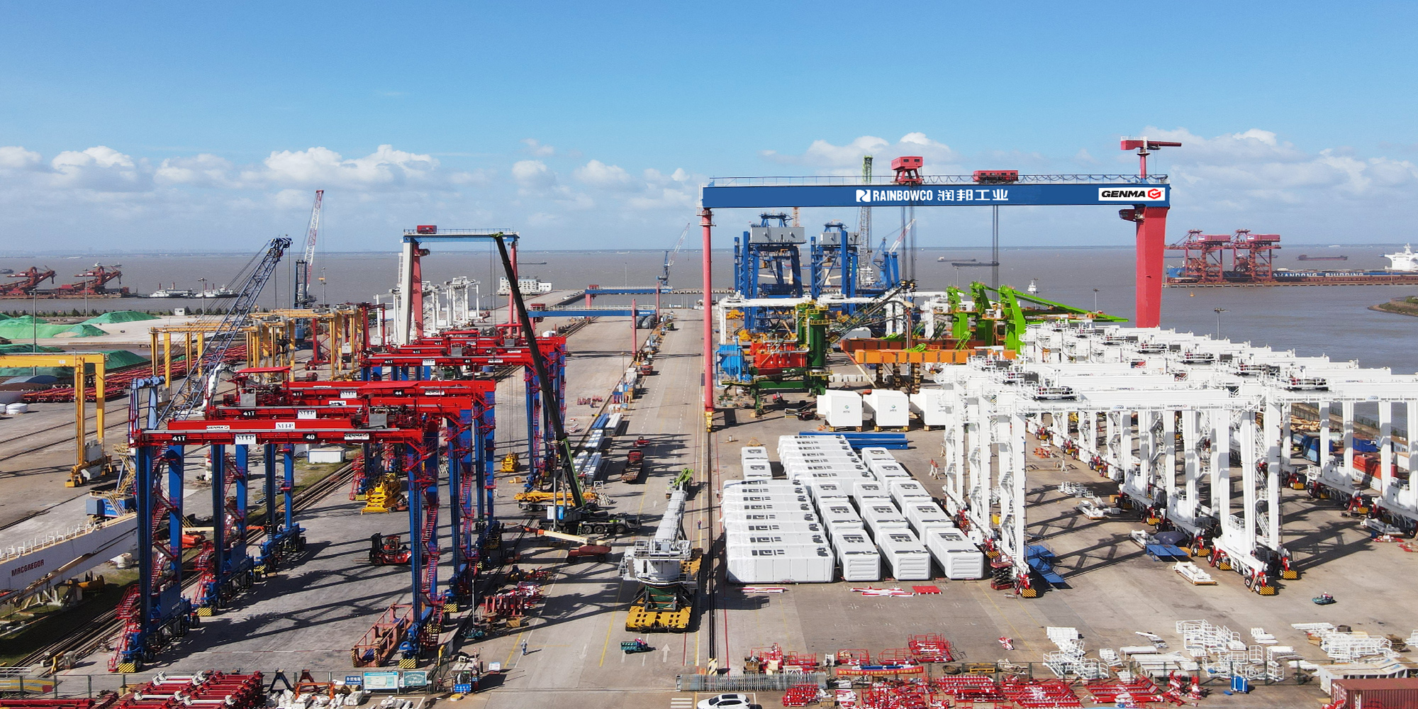 占地450畝,年產(chǎn)能200臺(tái)套集裝箱港機(jī)